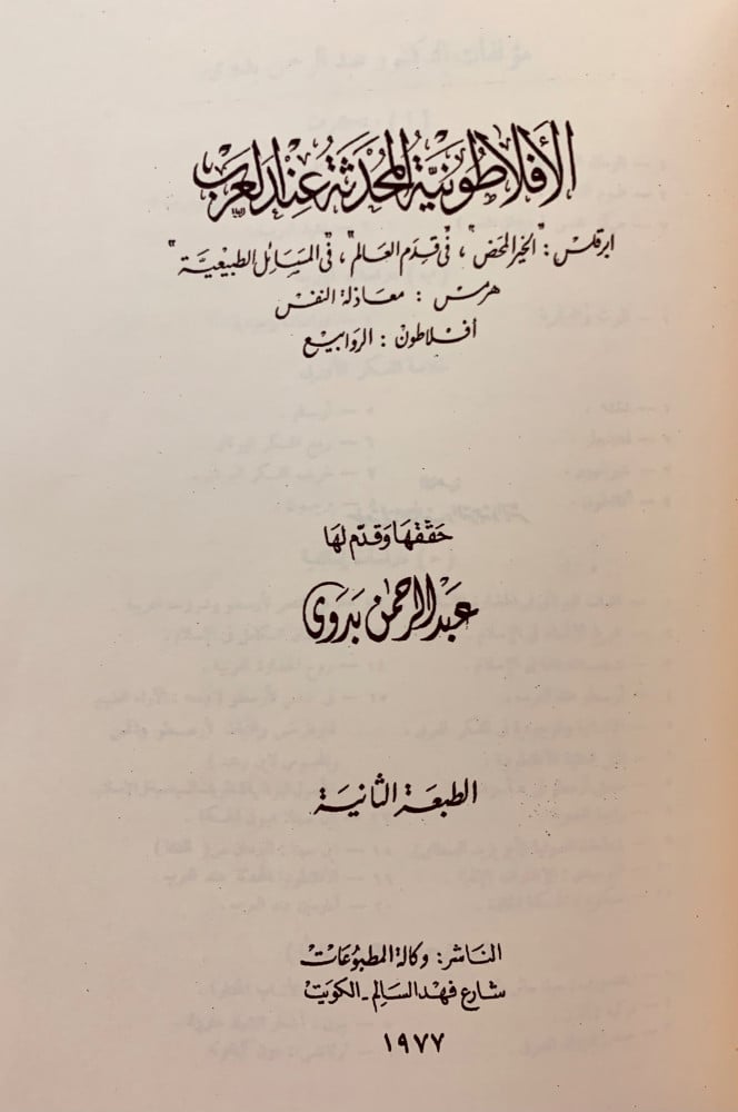 الافلاطونية المحدثة عند العرب/عبد الرحمن بدوي/الطبعة الثالثة1977