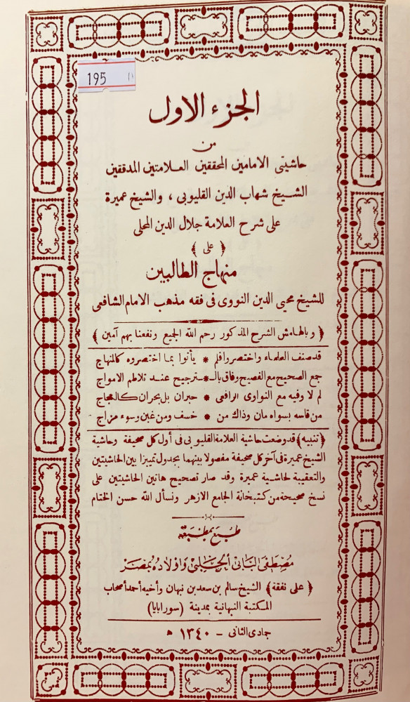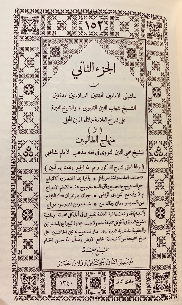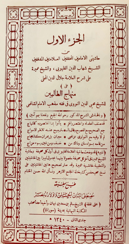 حاشية الامامين قليوبي وعميرة على شرح جلا الدين المحلى على منهاج الطالبين
