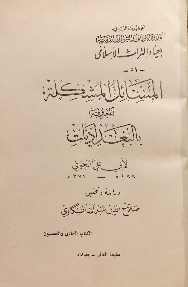 1297-المسائل المشكلة المعروفة بالبغداديات/ابي علي النحوي
