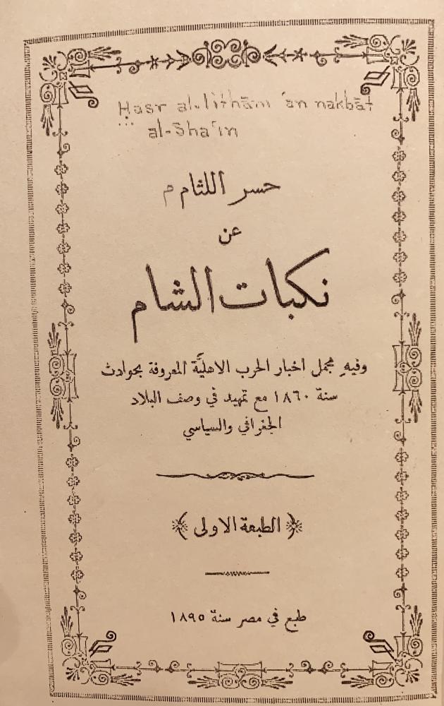 حسر اللثام عن نكبات الشام وفيه مجمل اخبار الحرب الاهلية المعروفة بحوادث سنة ١٨٦٠