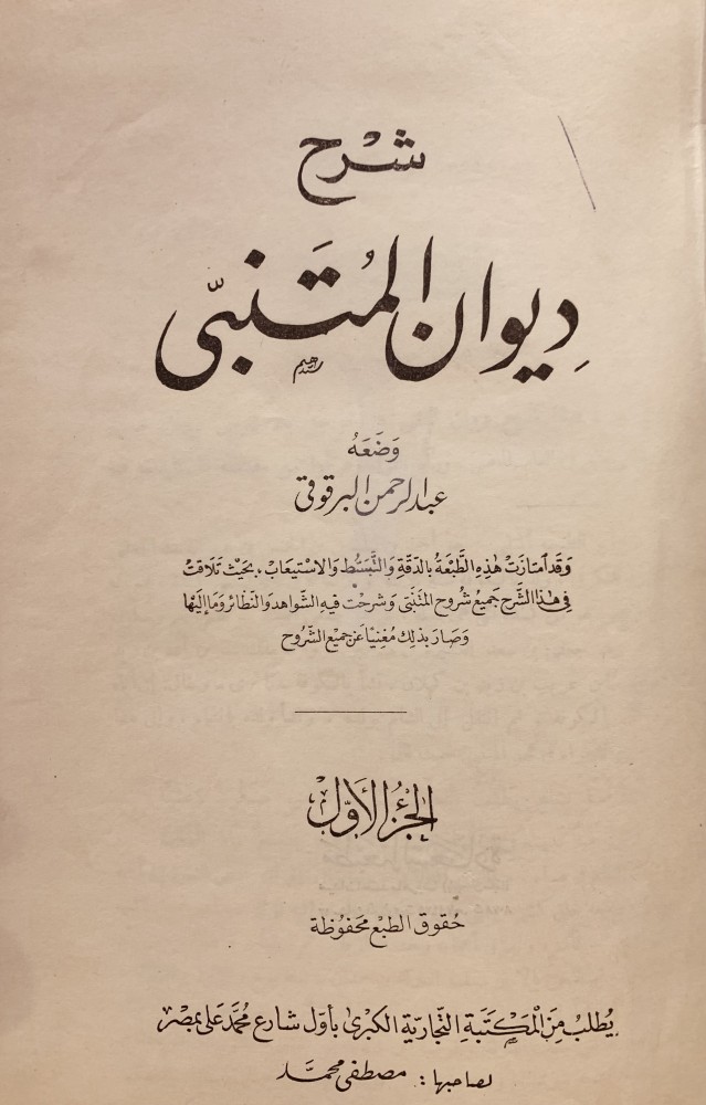 14873-شرح ديوان المتنبي 4/1 البرقوقي