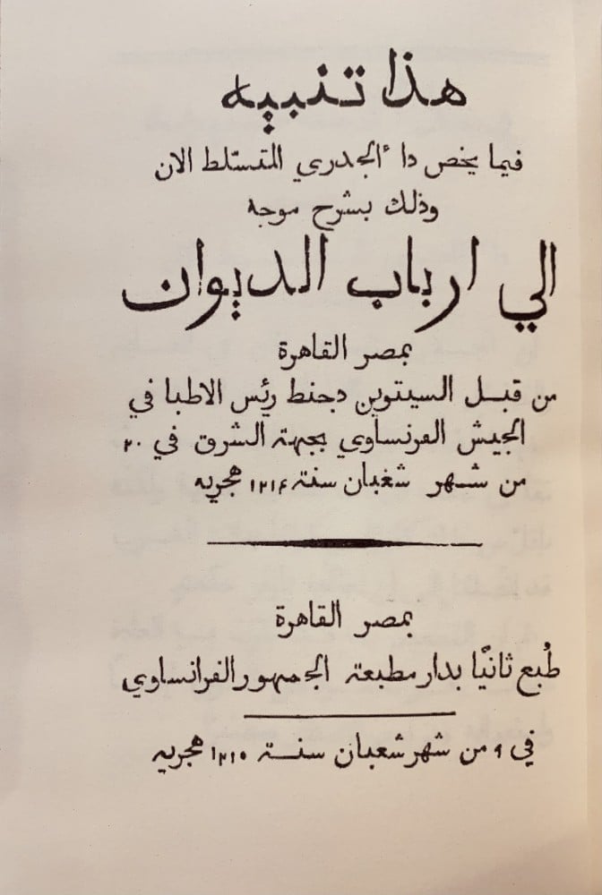 الكتاب يحتوي على مطبوعات الحملة الفرنسية على مصر 1798-1801