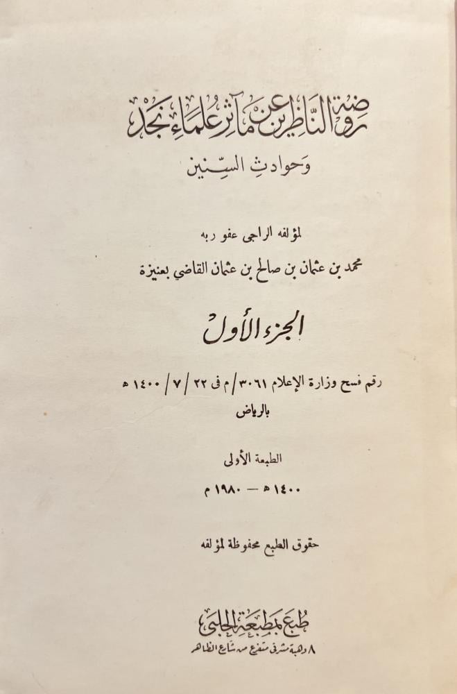 22070-روضة الناظرين عن ماثر علماء نجد وحوادث السنين 2/1 محمد بن عثمان