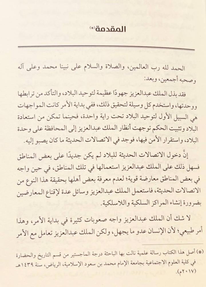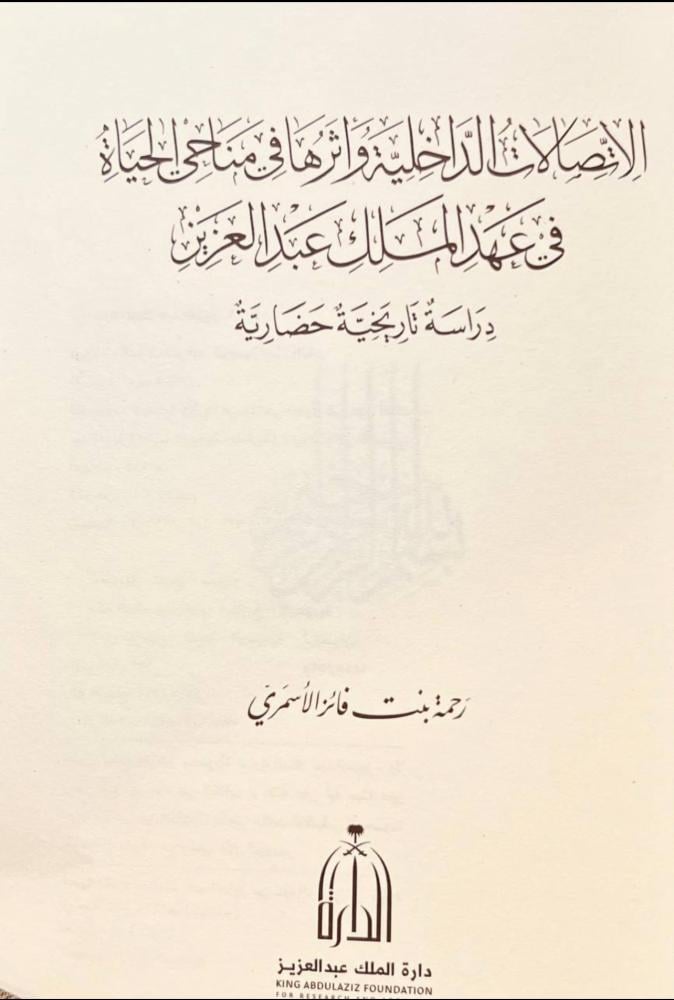 الاتصالات الداخلية واثرها في مناحي الحياة في عهد الملك عبدالعزيز دراسة تاريخية حضارية