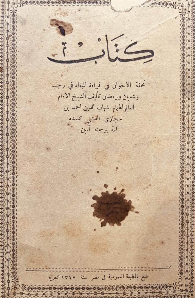 22395-تحفة الاخوان في قراءة الميعاد في رجب وشعبان ورمضان / شهاب الدين الفشني