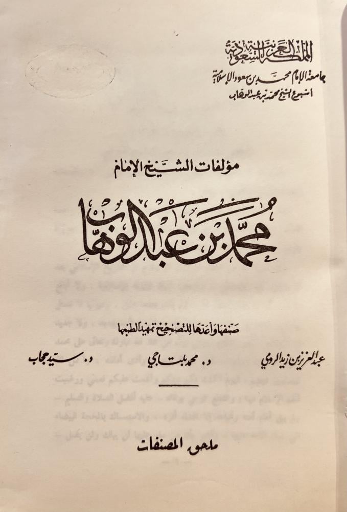 مؤلفات الشيخ الامام محمد بن عبدالوهاب 15/1