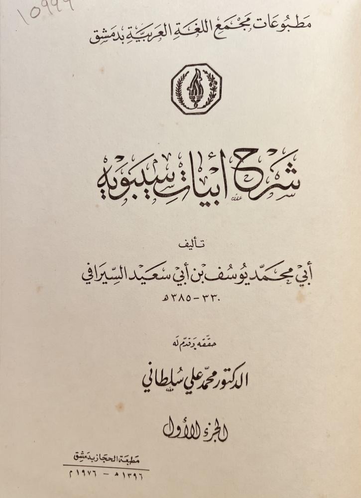 10999-شرح ابيات سيبويه 2/1 /يوسف السيرافي