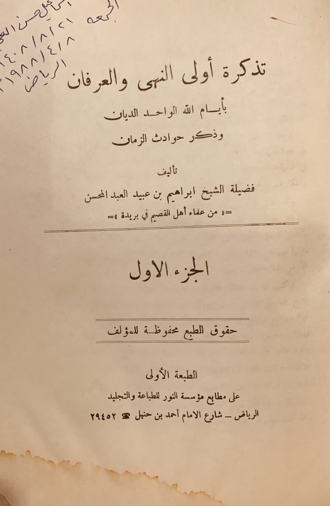 تذكرة اولى النهى والعرفان بايام الله الواحد الديان وذكر حوادث الزمان 5/1