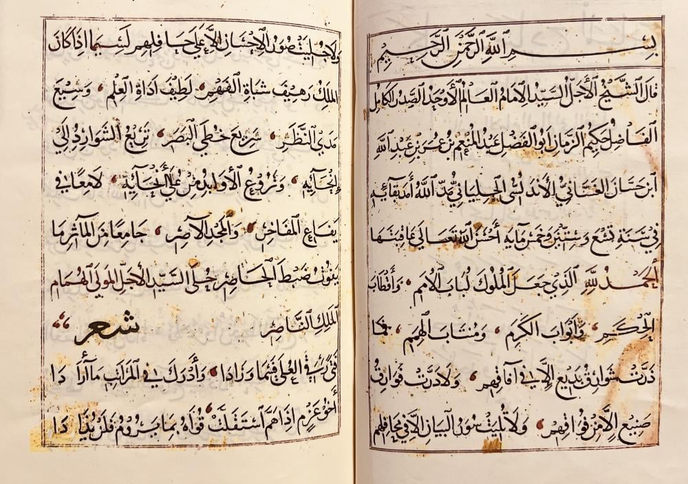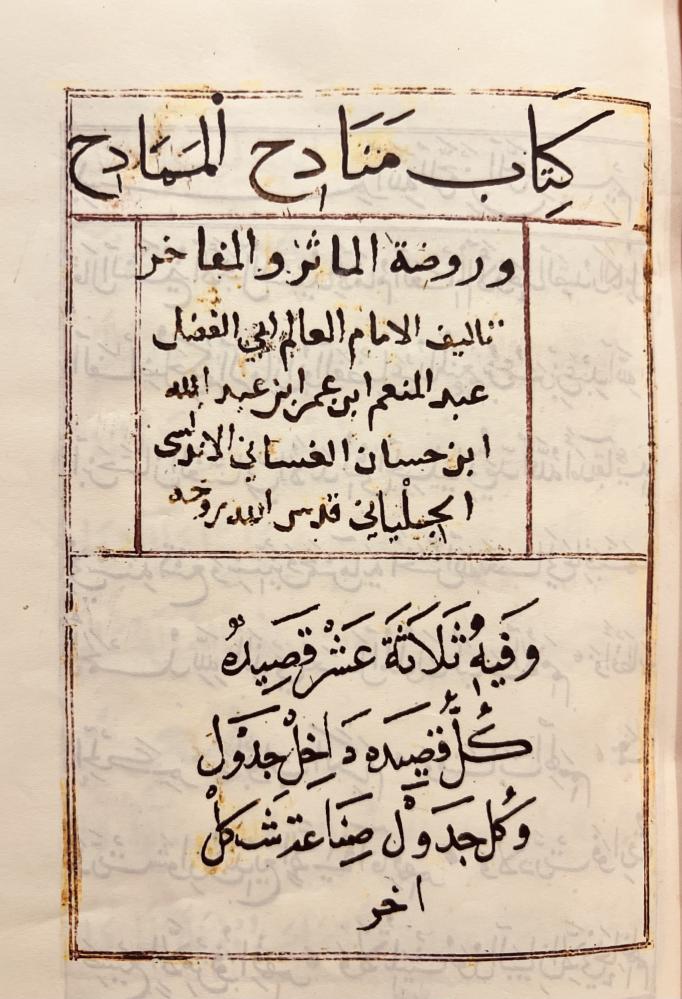 398-صورة مخطوط منادح الممادح وروضة المآثر والمفاخر/عبدالمحسن الغساني تجليد هامش