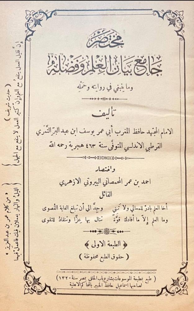 مختصر جامع بيان العلم وفضله
