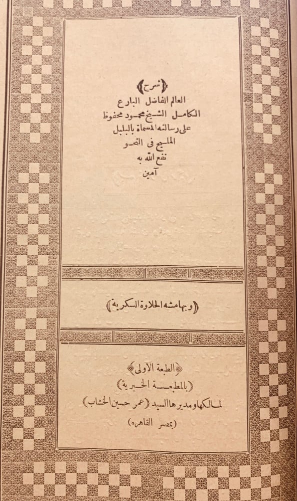 شرح محمود محفوظ على رسالته المسماة البلبل المليح في النحو وبهامشه الحلاوة السكرية