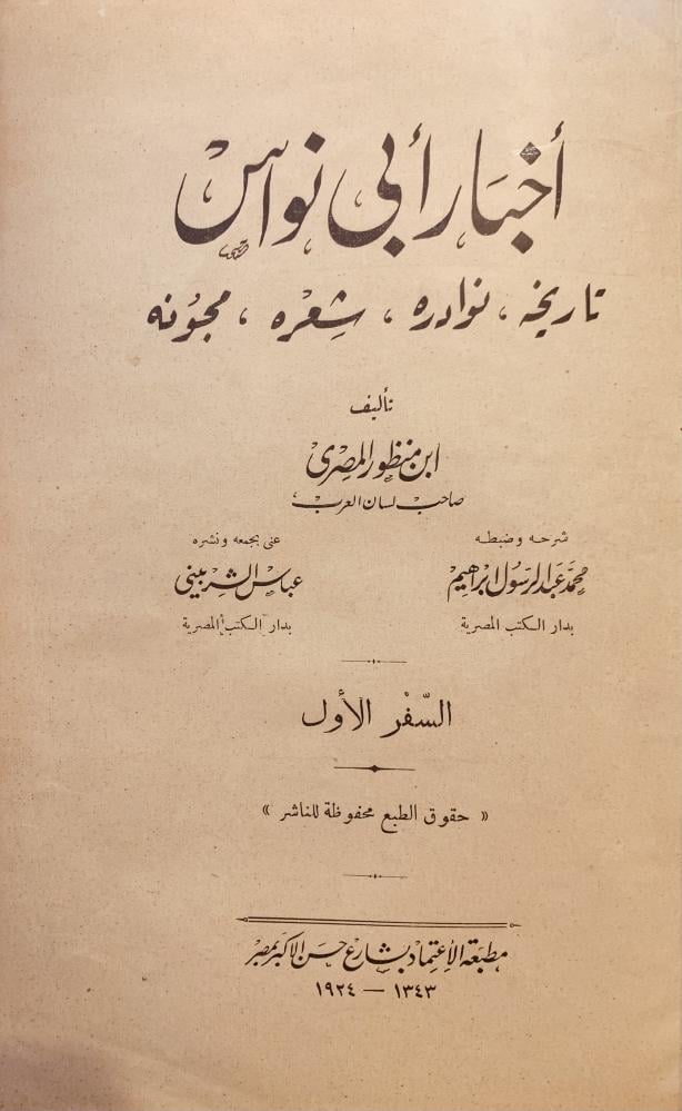 18171-اخبار ابي نواس تاريخه نوادره شعره مجونه/ابن منظور