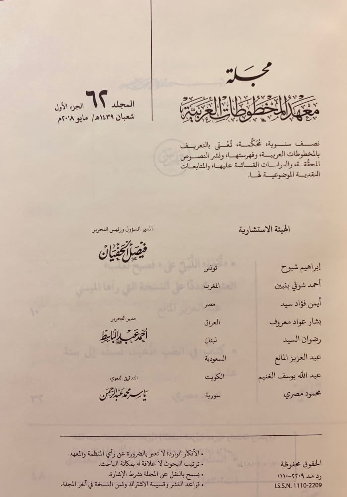 مجلة علمية نصف سنوية تعنى بالتعريف بالمخطوطات العربية وفهرستها ونشر النصوص المحققة