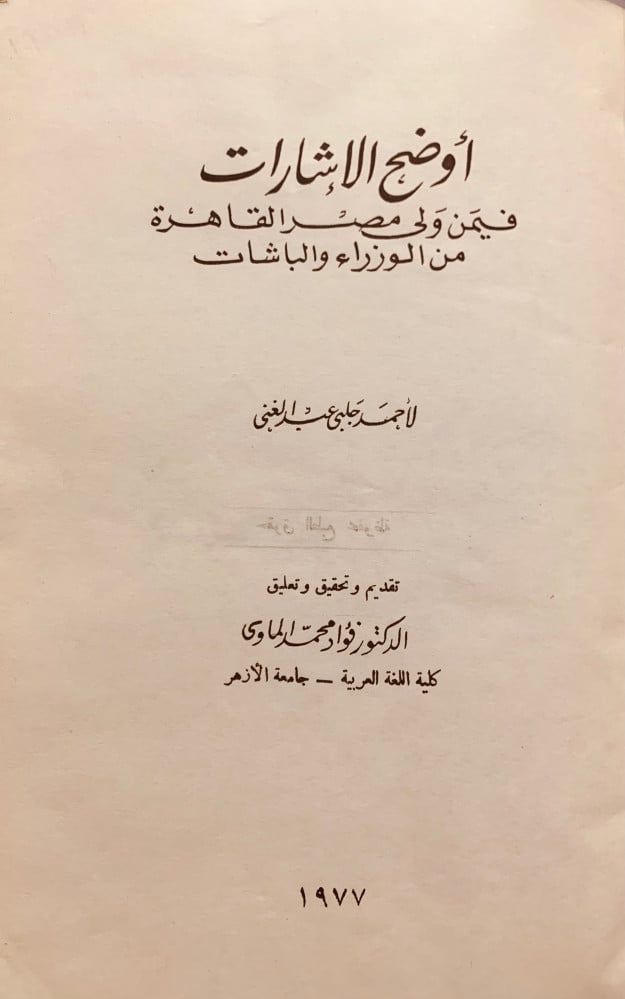 اوضح الاشارات فيمن ولى مصر القاهرة من الوزراء والباشات