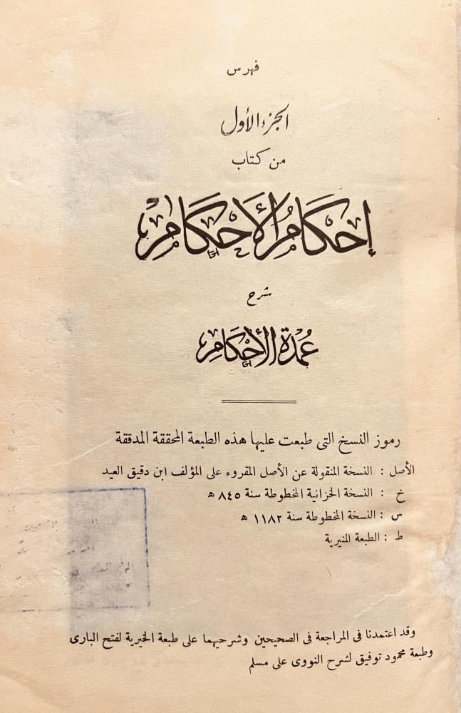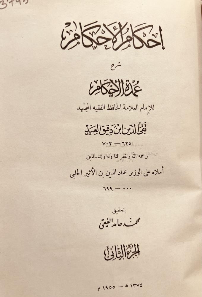 احكام الاحكام شرح عمدة الاحكام 2/1