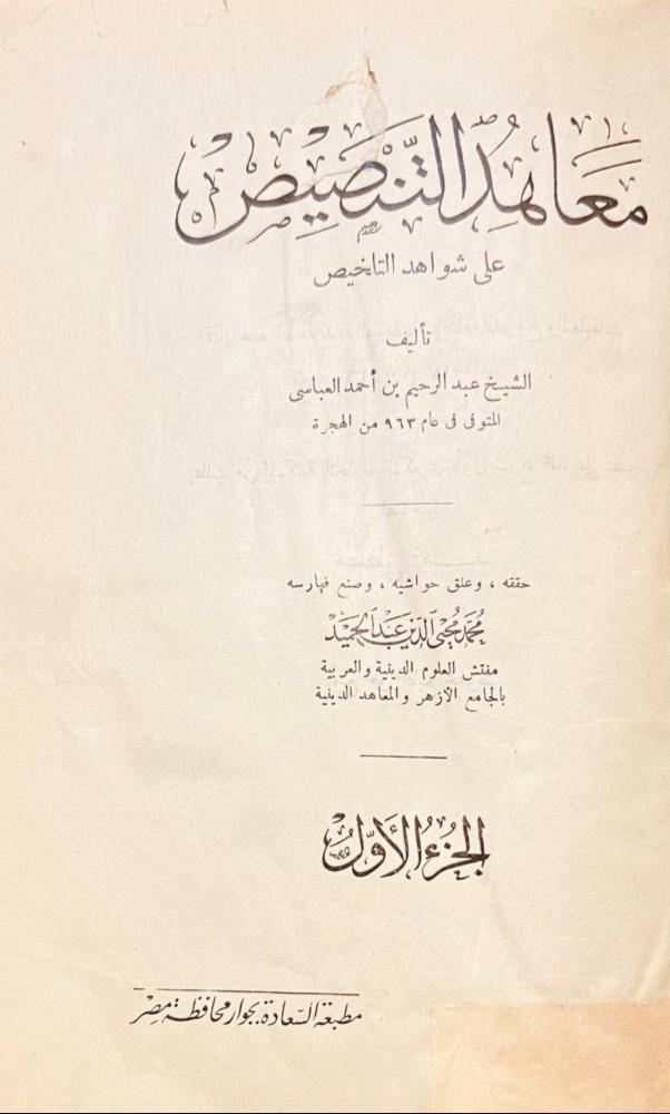 معاهد التنصيص على شواهد التلخيص 4/1 مجلدين