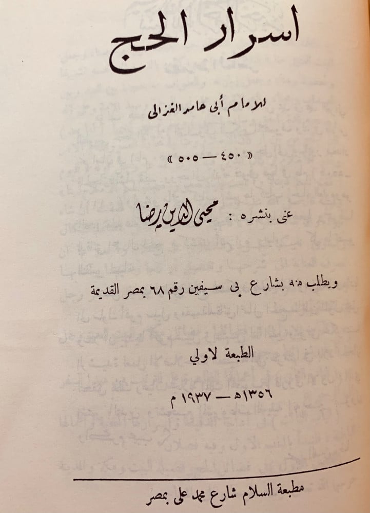 اسرار الحج/الغزالي/عنا به:محي الدين رضا/مطبعة السلام/الطبعة الاولى1937