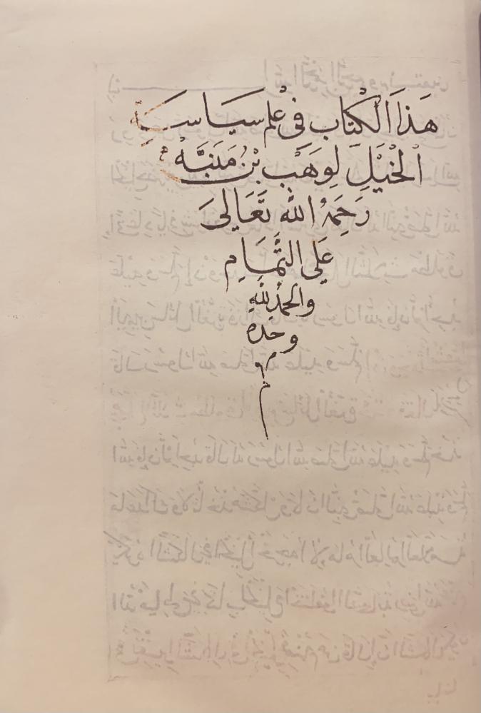 376-صورة مخطوط علم سياسة الخيل/وهب بن منبه اركان
