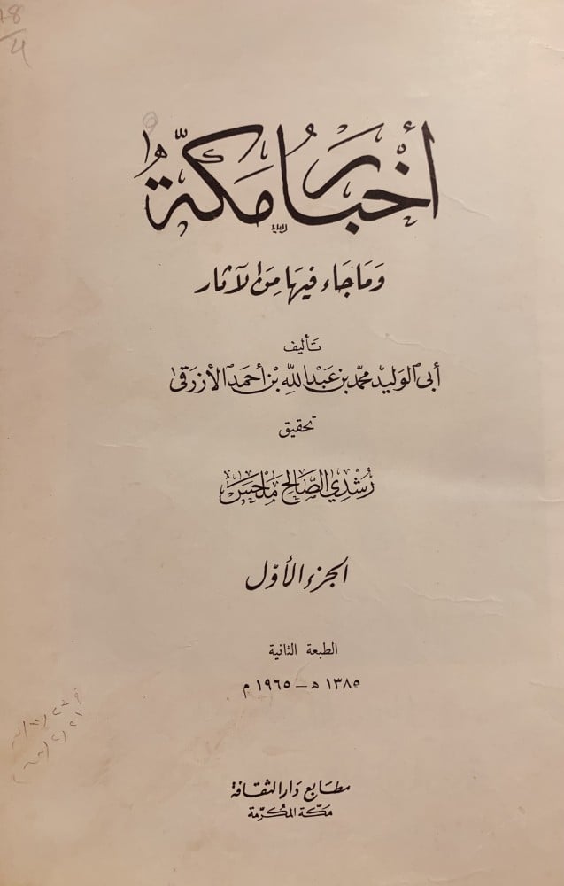 اخبار مكة وماجاء فيها من الاثار 2/1