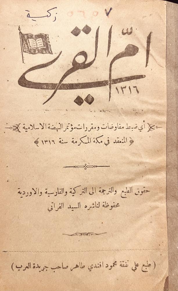 ام القرى اي ضبط مفاوضات ومقررات مؤتمر النهضة الاسلامية في مكة المكرمة ١٣١٦
