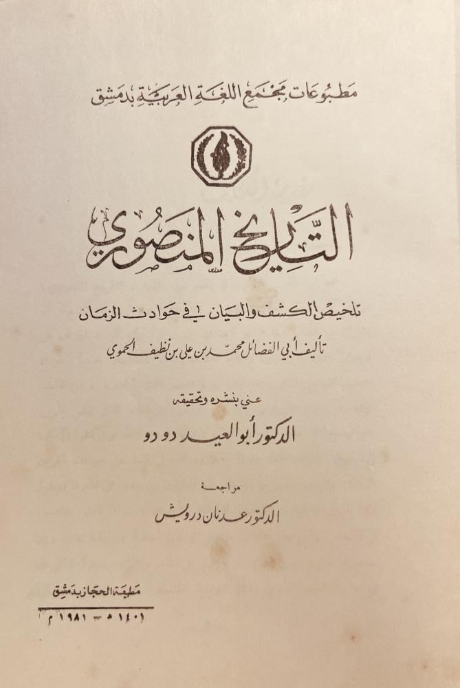 التاريخ المنصوري تلخيص الكشف والبيان في حوادث الزمان