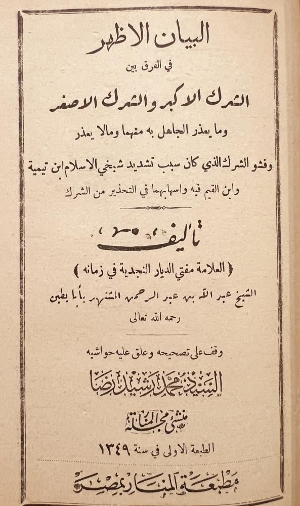 البيان الاظهر في الفرق بين الشرك الاكبر والشرك الاصغر