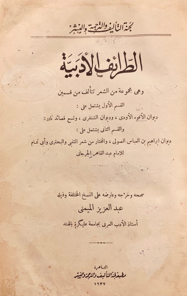 الطرائف الادبية وهي مجموعة من الشعر تتالف من قسمين: