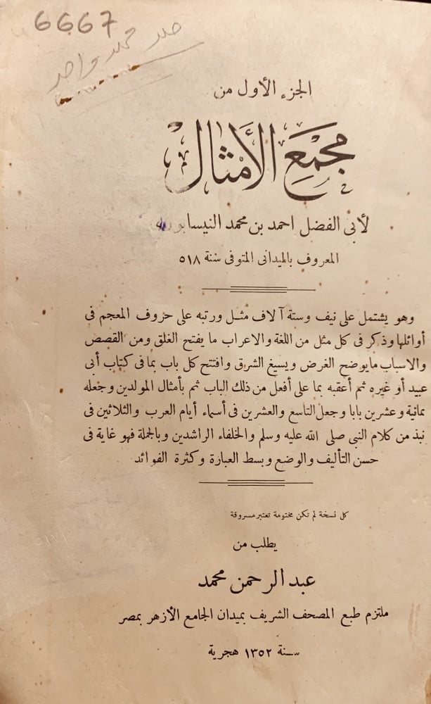 6667-مجمع الامثال 2/1 مجلد واحد-الميداني