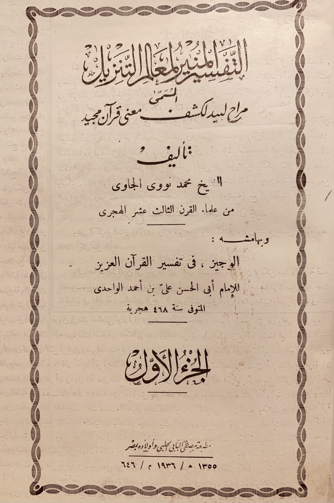 التفسير المنير لمعالم التنزيل المسمى مراح لبيد لكشف معنى قران مجيد 2/1 مجلد واحد