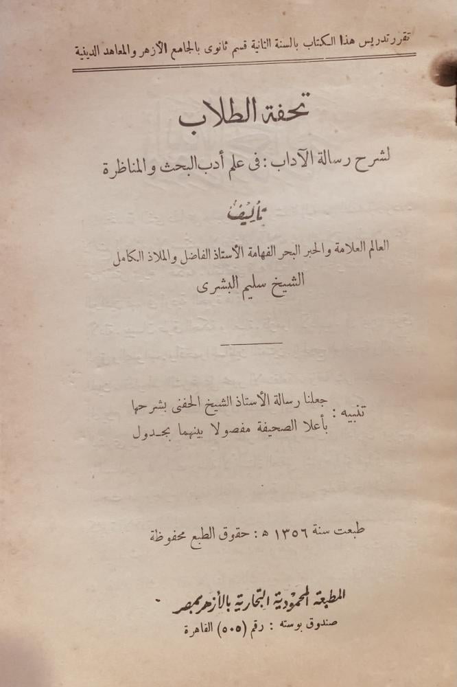 2736-تحفة الطلاب لشرح رسالة الاداب في علم ادب البحث والمناظرة/سليم البشرى