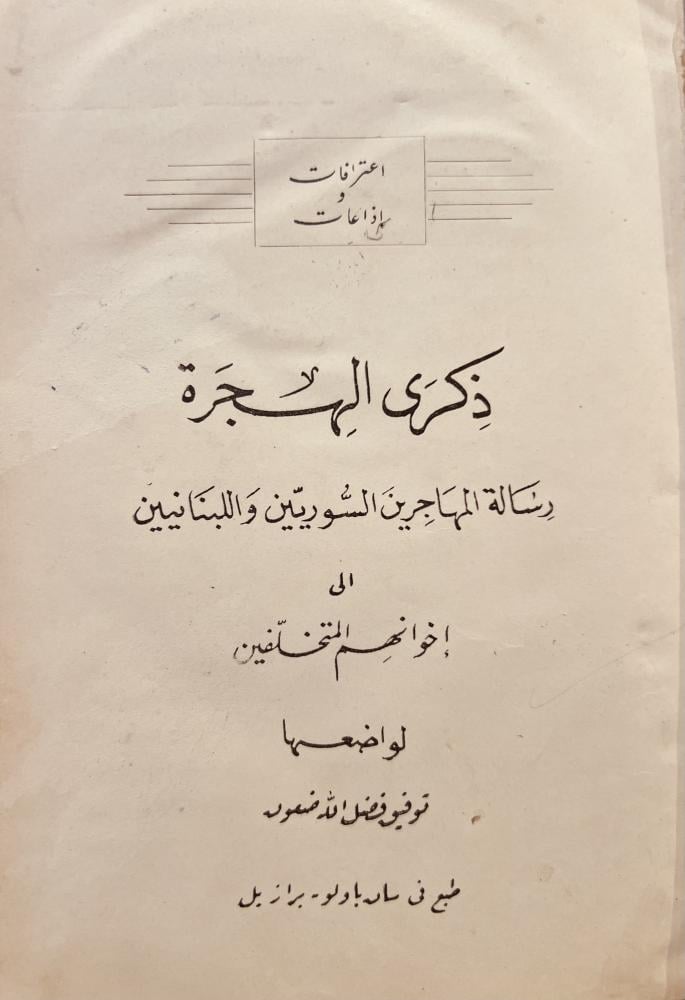 ذكرى الهجرة رسالة المهاجرين السوريين واللبنانيين الى اخوانهم المتخلفين