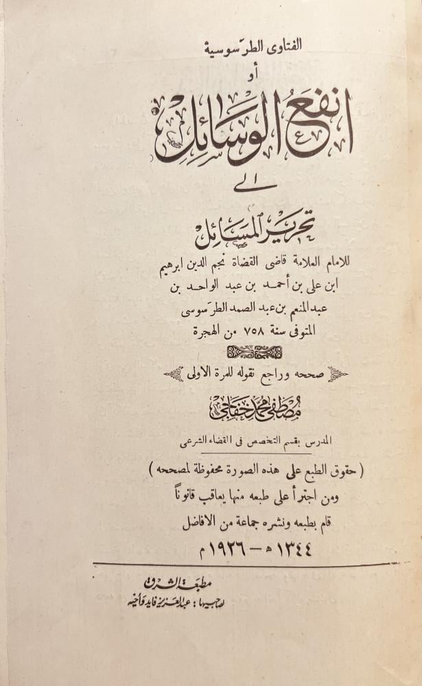 21004-الفتاوى الطرسوسية او انفع الوسائل إلى تحرير المسائل/نجم الدين الطرسوسي