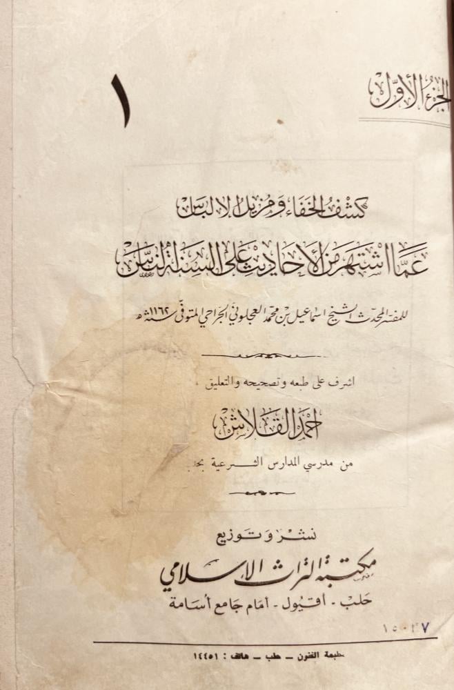 كشف الخفاء ومزيل الالباس عما اشتهر من الاحاديث على السنة الناس 2/1