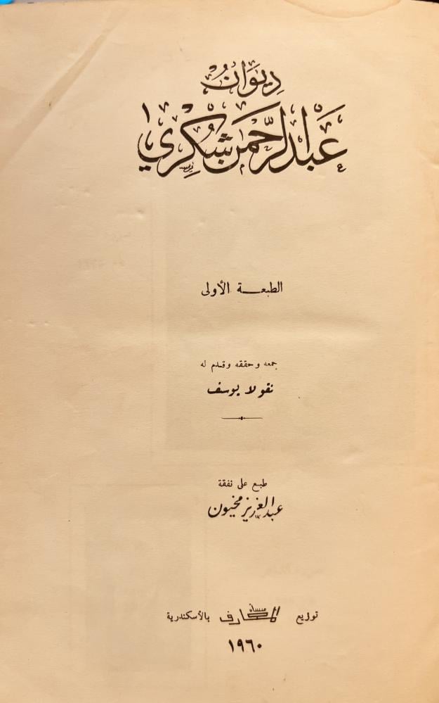 21905-ديوان عبدالرحمن شكري /نقولا يوسف