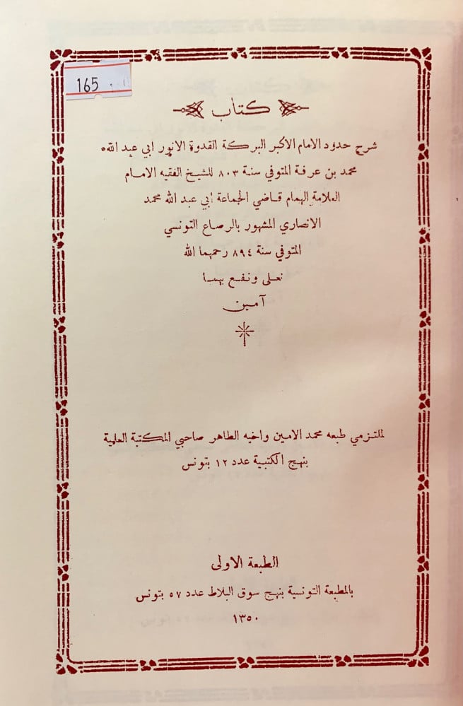 تاليف:محمد الانصاري الرصاع