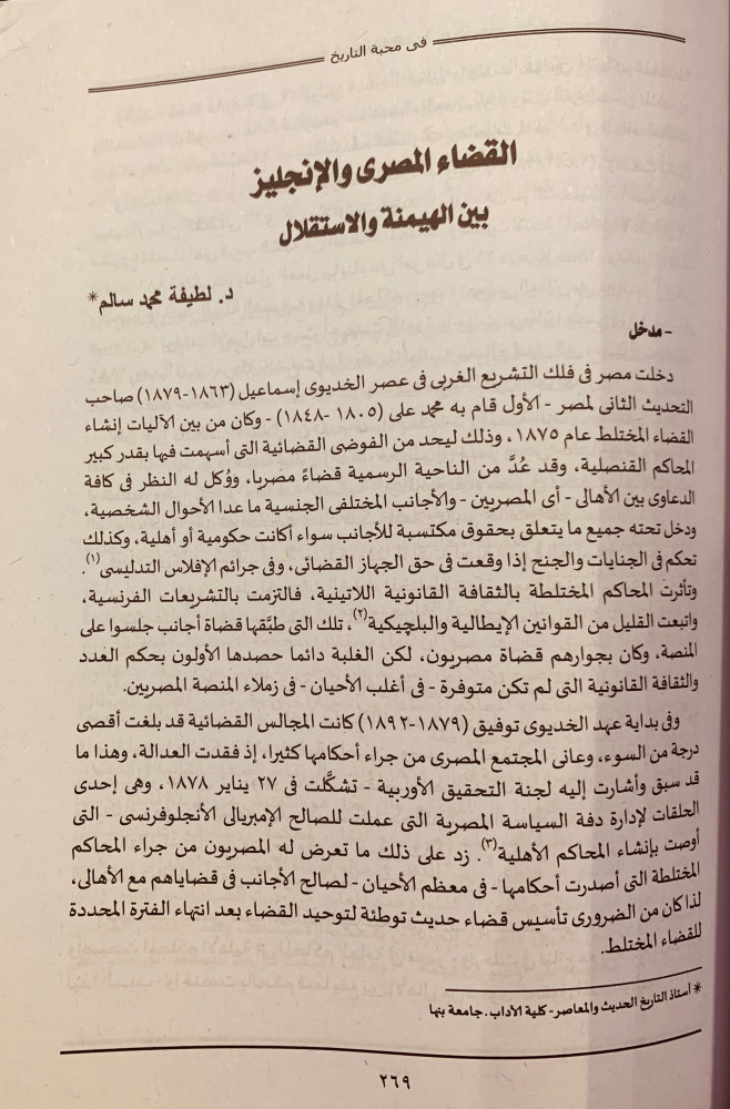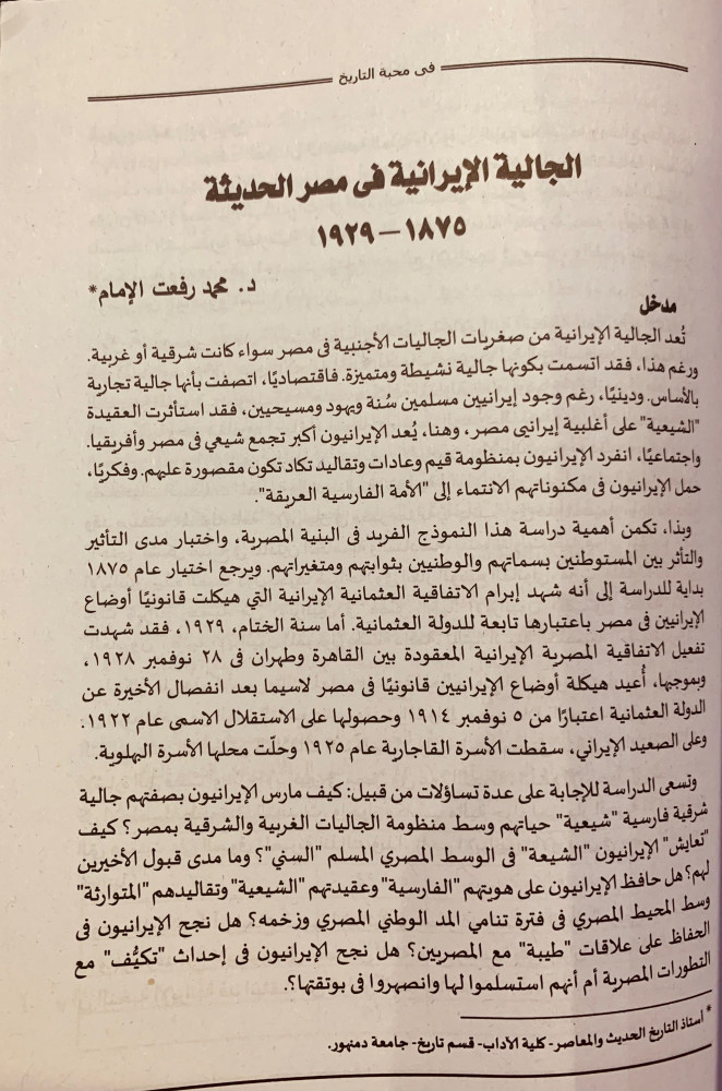 في محبة التاريخ دراسات في تاريخ مصر الحديث والمعاصر مهداة الى احمد زكريا الشلق