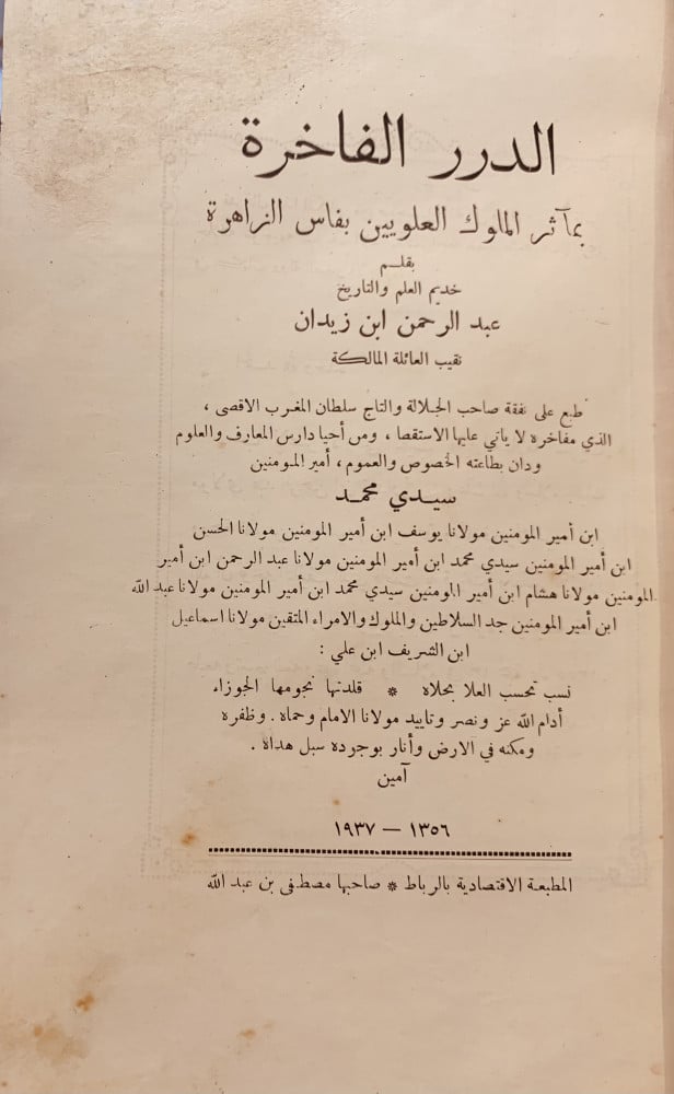 9774-الدرر الفاخرة بماثر الملوك العلويين بفاس الزاهرة/عبدالرحمن زيدان
