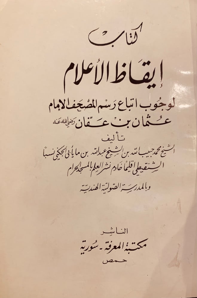 ايقاظ الاعلام لوجوب اتباع رسم المصحف الامام عثمان بن عفان رضي اللّهُ عنه