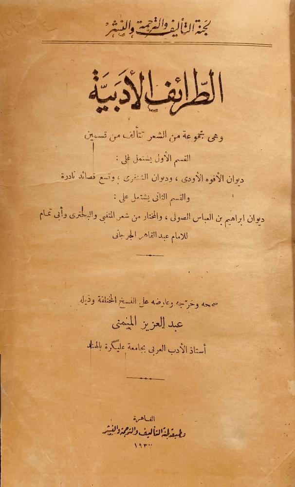 الطرائف الادبية وهي مجموعة من الشعر من قسمين