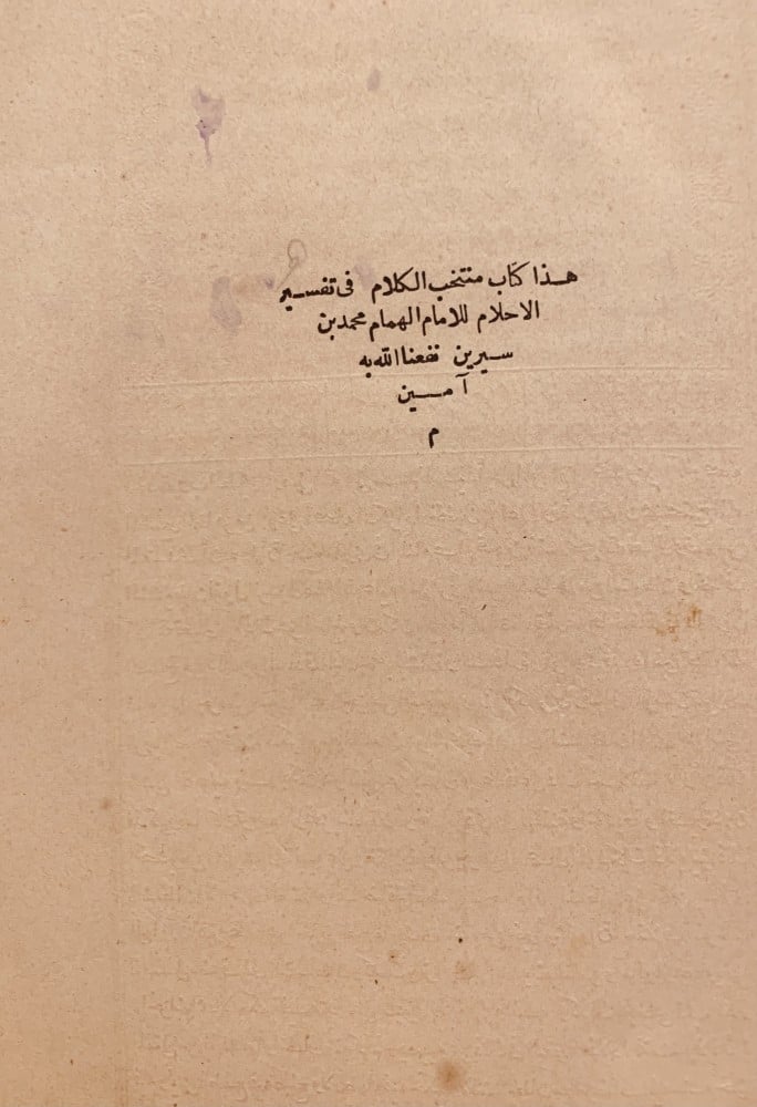 14361-منتخب الكلام في تفسير الاحلام /ابن سيرين