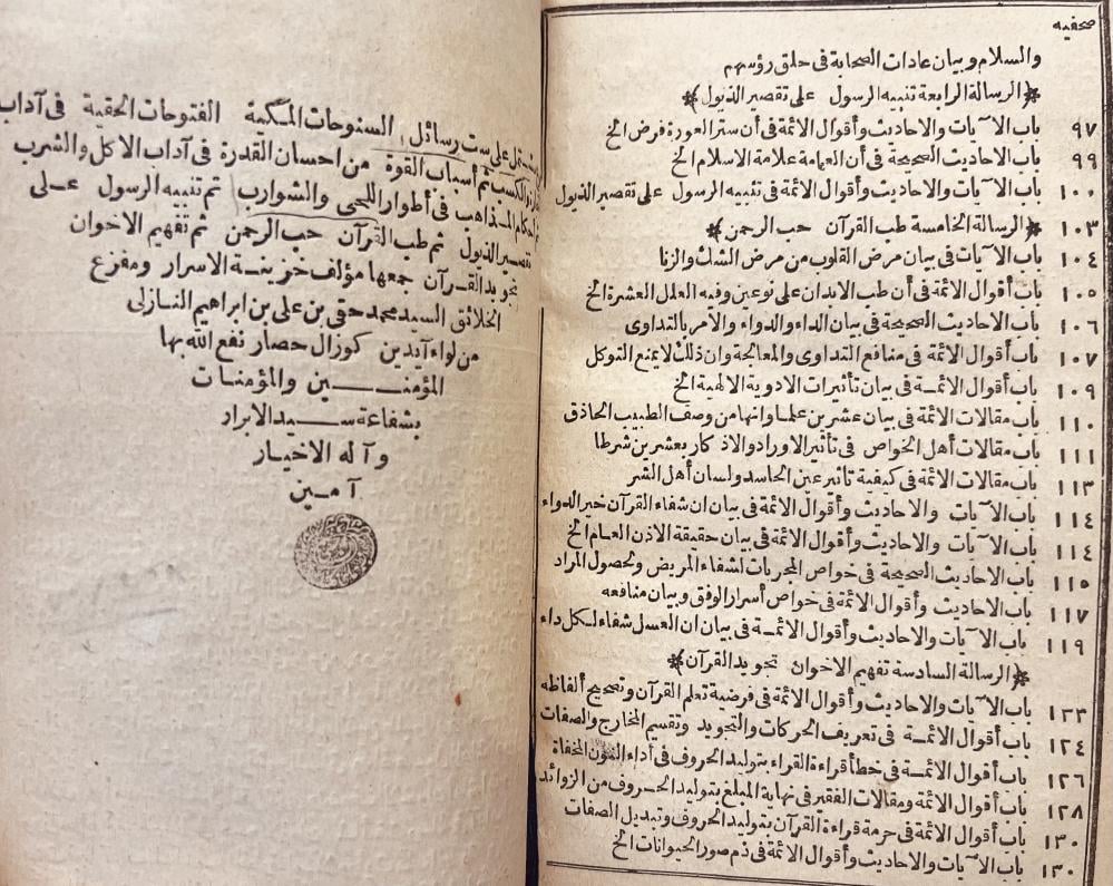 السنوحات المكية الفتوحات الحقية /اسباب القوة من احسان القدرة في اداب الاكل والشرب / احكام المذاهب في اطوار اللحى والشوارب /تنبيه الرسول على تقصير الذيول / طب القران حب الرحمن/ تفهيم الاخوان تجويد القران