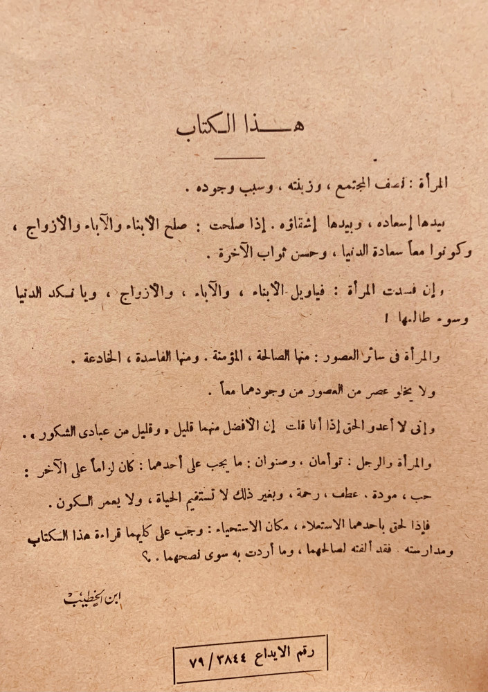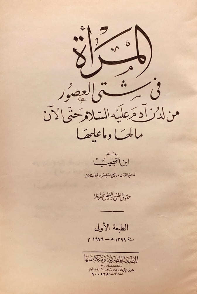 5802- المراة في شتى العصور من لدن ادم عليه السلام حتى الان مالها وماعليها/ابن الخطيب