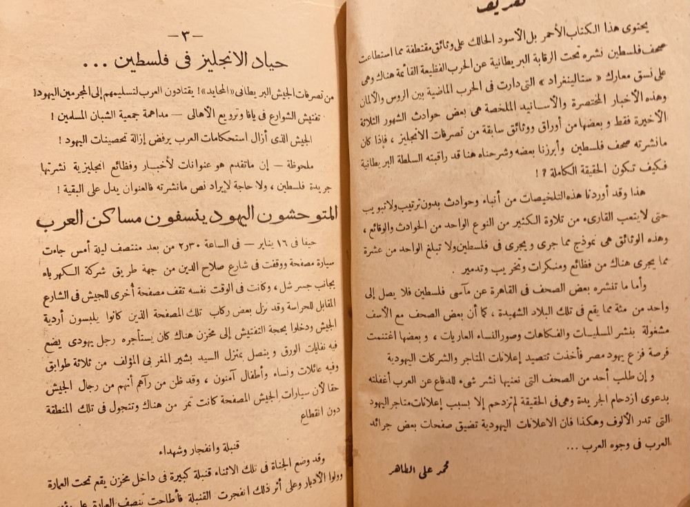 13518-اوراق مجموعة كتاب احمر عن فظائع الانجليز في فلسطين وغدر اليهود وصبر العرب/محمد الطاهر