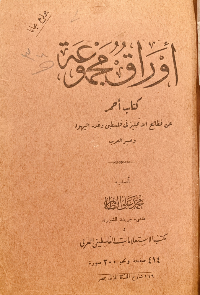 اوراق مجموعة كتاب احمر عن فظائع الانجليز في فلسطين وغدر اليهود وصبر العرب