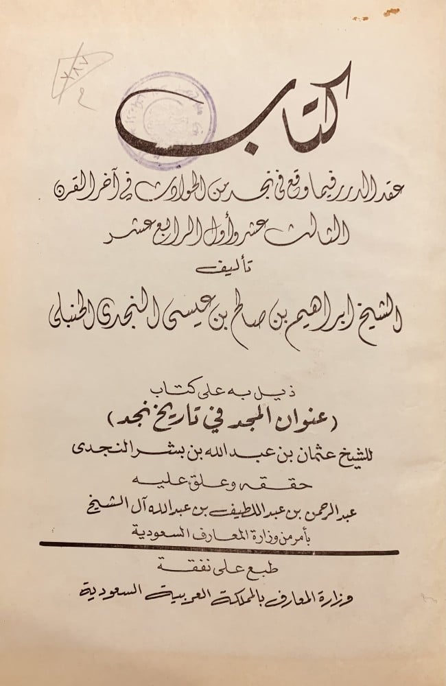 عقد الدرر فيما وقع في نجد من الحوادث في اخر القرن الثالث عشر والرابع عشر