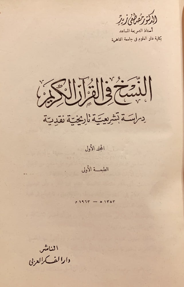 النسخ في القران الكريم دراسة تشريعية تاريخية نقدية2/1