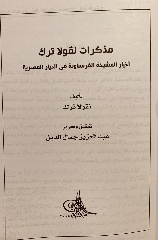 مذكرات نقولا ترك اخبار المشيخة الفرنساوية في الديار المصرية