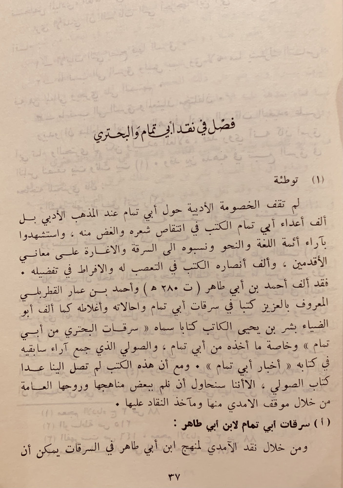 النقد الادبي حول ابي تمام والبحتري في القرن الرابع الهجري