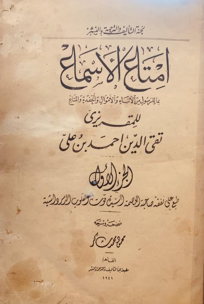 امتاع الأسماع بما للرسول من الانباء والاموال والحفدة والمتاع الجزء الاول