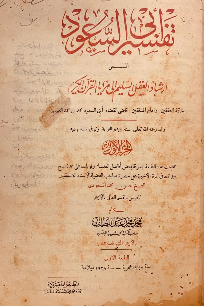 تفسير ابى السعود 3/1 المسمى ارشاد العقل السليم الى مزايا القران الكريم